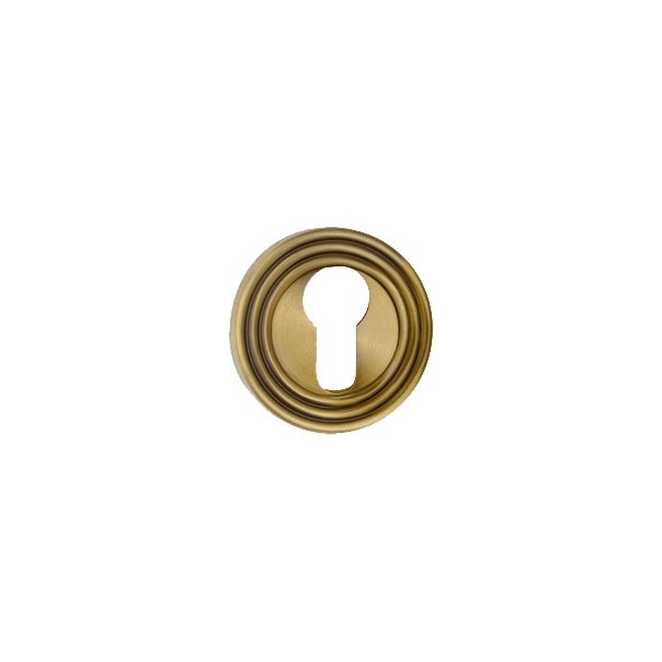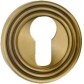 Dolny szyld okrągły o średnicy Ø 54 mm, wyposażony w otwór na wkładkę. Montowany na śruby i wkręty. Wykonany z mosiądzu i dostępny w wykończeniu brązowionym matowym (ciemnym) + przecieranym lakierowanym.