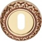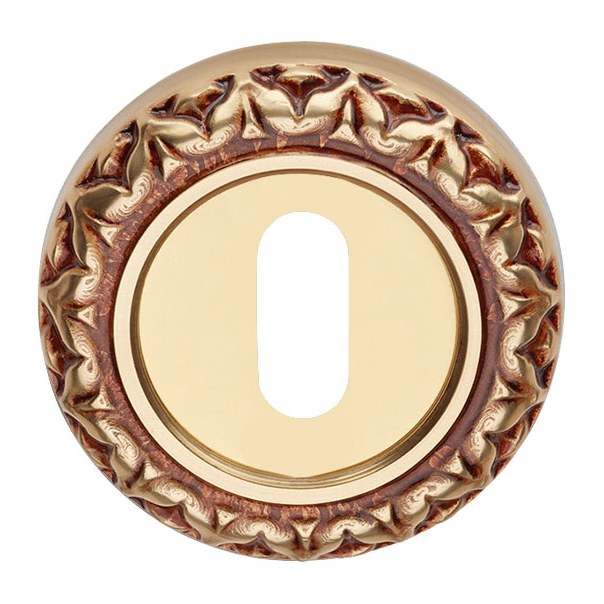 Okrągły szyld ozdobny o średnicy Ø 55 mm, wyposażony w otwór na klucz. Montowany na śruby i wkręty. Wykonany z mosiądzu i dostępny w wykończeniu stare złoto (francuskie).
