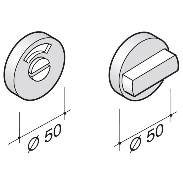 - Okrągły szyld dolny o średnicy 50 mm z blokadą WC.