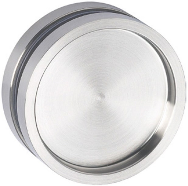 Komplet okrągłych uchwytów o średnicy 65 mm do drzwi całoszklanych o grubości tafli 8-12 mm.