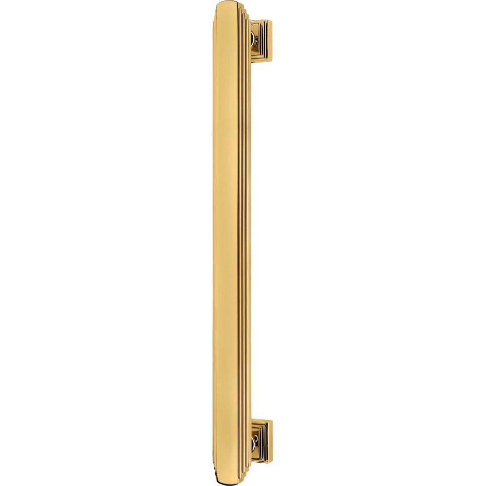 Mosiężny uchwyt o rozstawie 300 mm. Dedykowany do montażu jednostronnego na drzwiach drewnianych. Model Glamor charakteryzuje harmonia i minimalizm. Zarówno ich wzornictwo, jak i sam kształt nawiązuje do włoskiego modernizmu, którego początki sięgają lat 20. i 30. ubiegłego wieku. Brak jakichkolwiek ornamentów oraz symetryczna i geometryczna forma sprawia, że uchwyt prezentuje się bardzo nowocześnie, a zarazem gustownie.