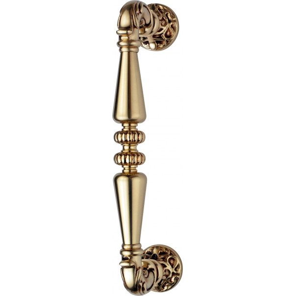 Bogato zdobiony uchwyt do drzwi posiadający rozstaw 228 mm. Montowany jednostronnie na skrzydle drzwiowym. Reprezentuje ponadczasowy styl rokoko. Stanowi wspaniały dodatek do eleganckich drzwi i wnętrz zarówno w rezydencjach czy willach, jak i luksusowych hotelach oraz restauracjach, mieszczących się w pałacach, dworach itp.
