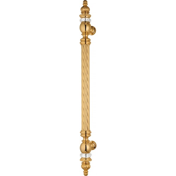 Uchwyt drzwiowy został wykonany z mosiądzu i jest dostępny w wykończeniu pozłacanym.