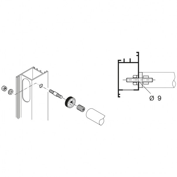 - Jednostronny zestaw mocujący do profili aluminiowych.
