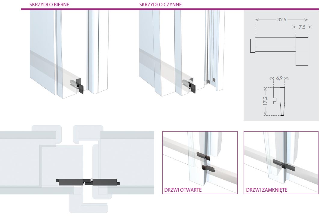 Uszczelki do drzwi dwuskrzydłowych, wypełniające przestrzeń pomiędzy kantryglem, a uszczelką opadającą. Dostępne w wykończeniu w kolorze czarnym.