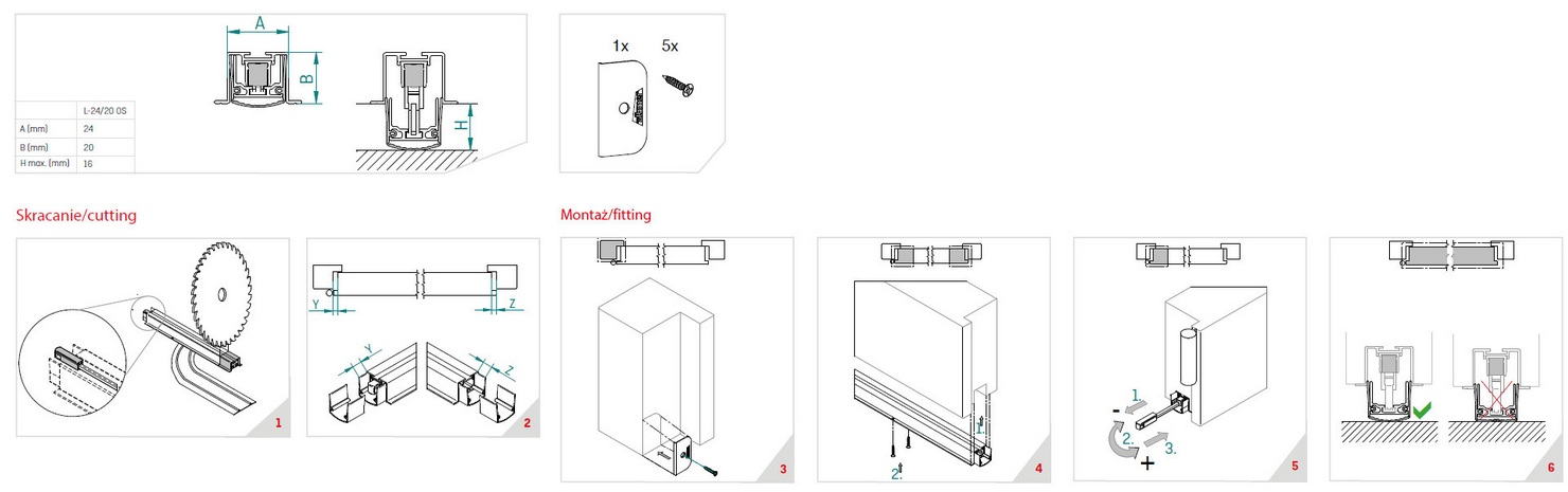Uszczelka opadająca o długości 1050 mm z możliwością skrócenia o 150 mm. Umieszczona w aluminiowym profilu o wymiarach 24x20 mm i wykonana z samogasnącego silikonu. Prawidłowo zamontowana uszczelka chroni przed przedostawaniem się kurzu, pyłu oraz innych drobnych zanieczyszczeń do wnętrza budynku / pomieszczenia. Ogranicza także ryzyko powstawania przeciągów, a ponadto zapewnia izolację akustyczną.