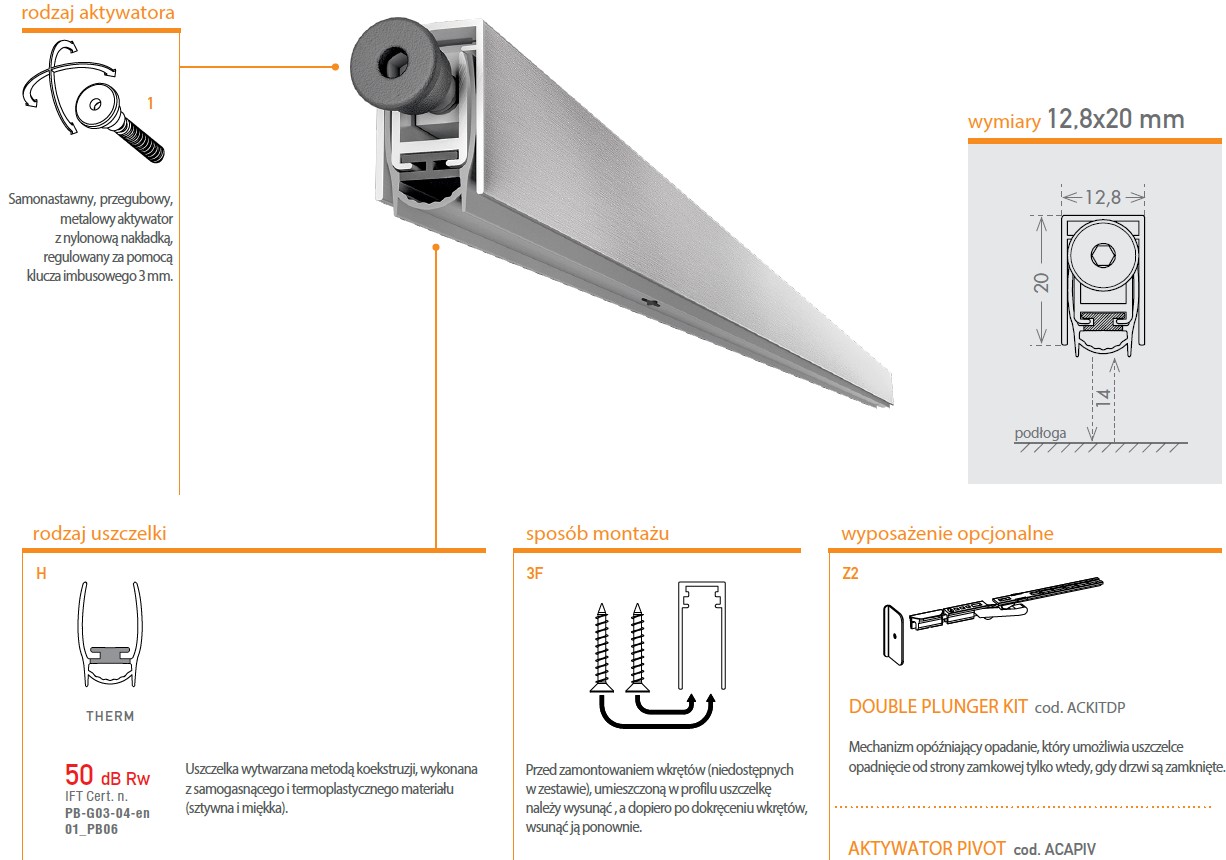 Uszczelka opadająca, aktywator.