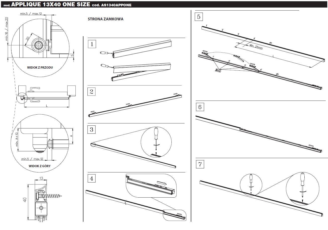 Uszczelka Applique jest montowana nawierzchniowo od boku skrzydła za pomocą wkrętów. Sposób montażu uszczelki obrazują poniższe grafiki.