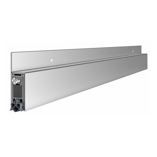 Uszczelka opadająca o długości 708 mm z możliwością skrócenia o 60 mm. Umieszczona w wykonanym ze stali nierdzewnej profilu o wymiarach 42x105 mm. Montowana nawierzchniowo na skrzydle drzwiowym za pomocą wkrętów. Prawidłowo zainstalowana uszczelka chroni przed przedostawaniem się kurzu, pyłu oraz innych drobnych zanieczyszczeń do wnętrza budynku / pomieszczenia. Ogranicza także ryzyko powstawania przeciągów, a ponadto zapewnia izolację akustyczną.
