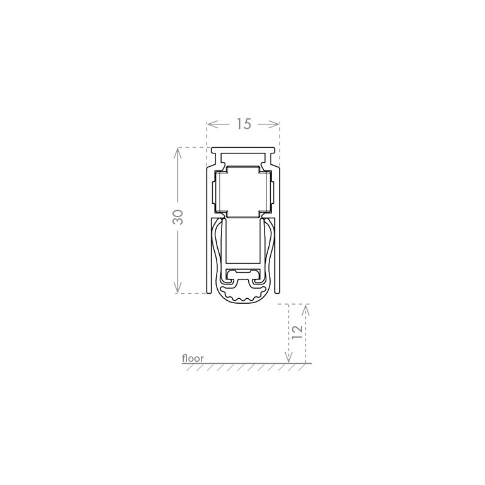 Uszczelka opadająca o długości 930 mm z możliwością skrócenia maksymalnie o 150 mm. Umieszczona w aluminiowym profilu o wymiarach 15x30 mm w wykończeniu anodyzowanym srebrnym. Działa w oparciu o technologię opóźnionego opadania co oznacza, że aktywuje się automatycznie kilka sekund po zamknięciu skrzydła drzwi. Jest montowana na wkręty od dołu skrzydła. Uszczelka chroni przed przedostawaniem się kurzu, pyłu oraz innych drobnych zanieczyszczeń do wnętrza budynku / pomieszczenia, a także zapewnia izolację akustyczną do 51,5 dB.