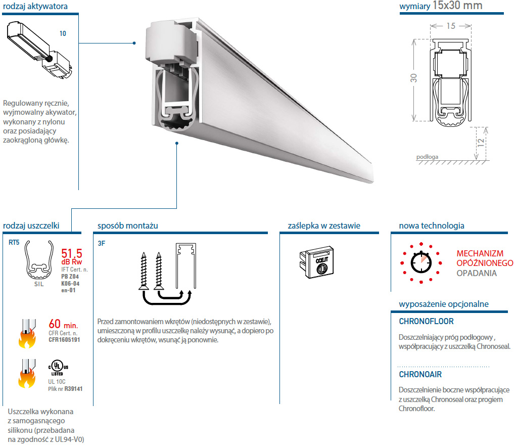 USZCZELKA OPADAJĄCA CHRONOSOFT 15x30 G=RT5 P=10 F=3F L=1130mm [>980mm]