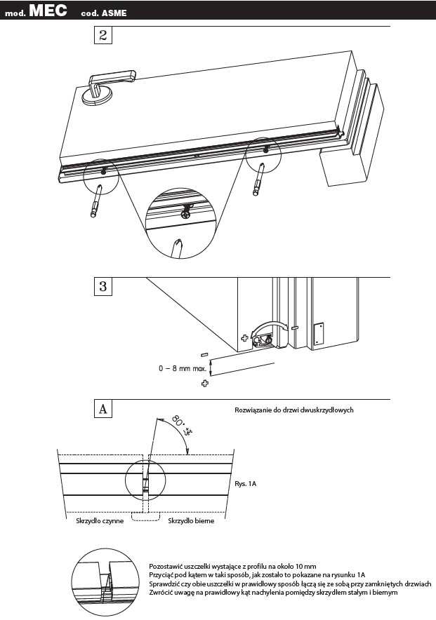 Uszczelka jest montowana na wkręty od dołu skrzydła. Sposób montażu uszczelki ilustrują poniższe grafiki.