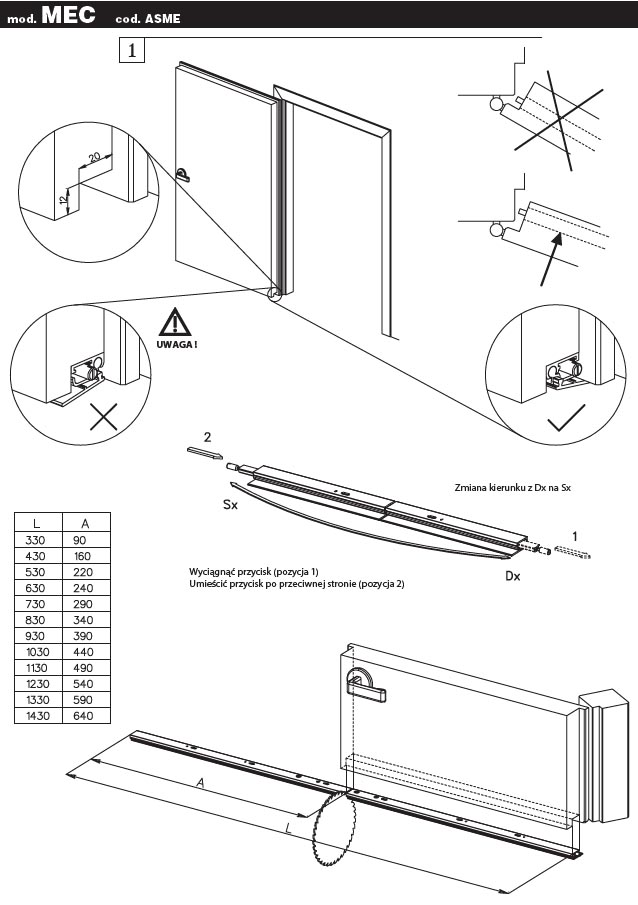 USZCZELKA OPADAJĄCA MEC 1030mm (>830mm)