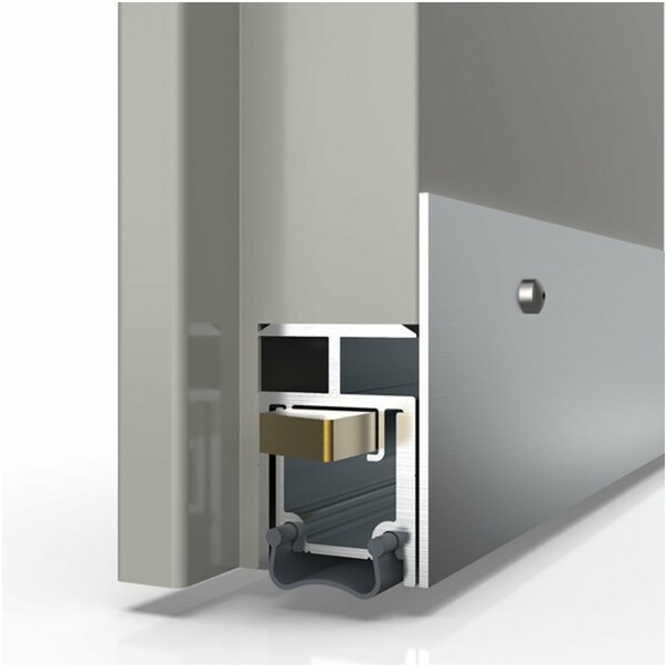 Uszczelka opadająca o długości 1500 mm. Umieszczona w aluminiowym profilu o wymiarach 28,5x40 mm i wykonana z samogasnącego silikonu. Prawidłowo zamontowana uszczelka chroni przed przedostawaniem się kurzu, pyłu oraz innych drobnych zanieczyszczeń do wnętrza budynku / pomieszczenia. Ogranicza także ryzyko powstawania przeciągów.