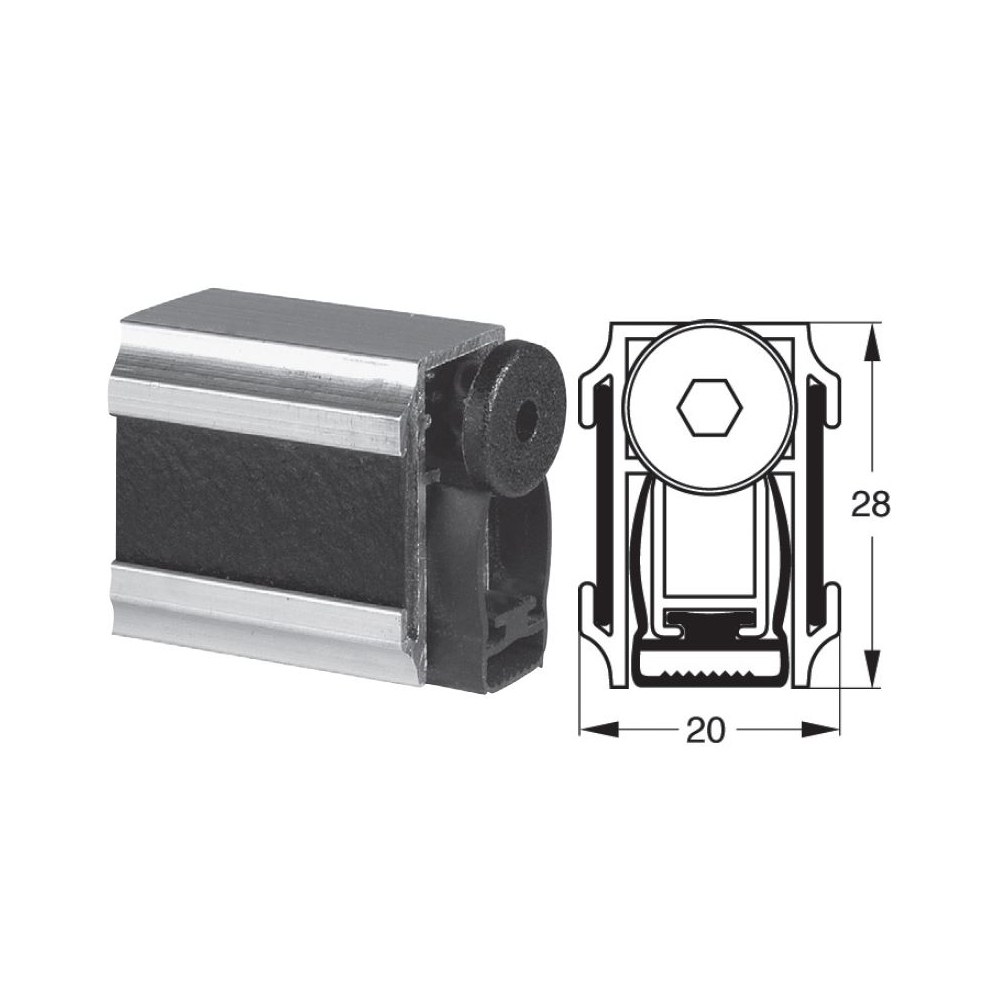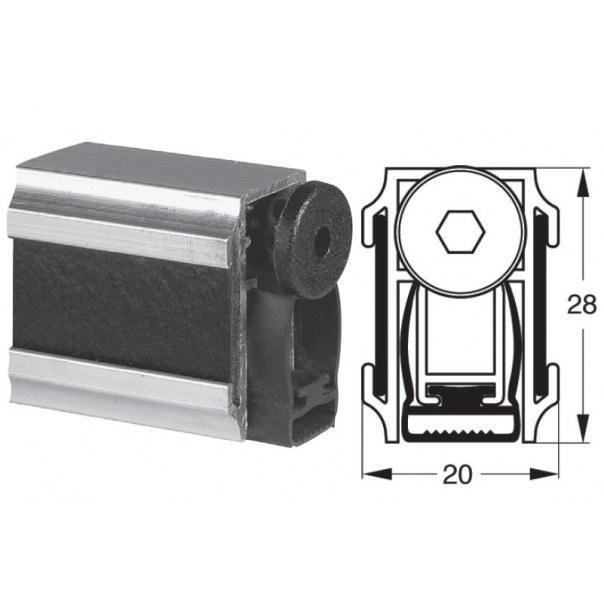Uszczelka opadająca o długości 1025 mm umieszczona w aluminiowym profilu o wymiarach 20x28 mm i wykonana z samogasnącego materiału.