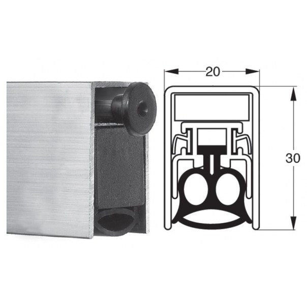 Uszczelka opadająca o długości 825 mm umieszczona w aluminiowym profilu o wymiarach 20x30 mm.