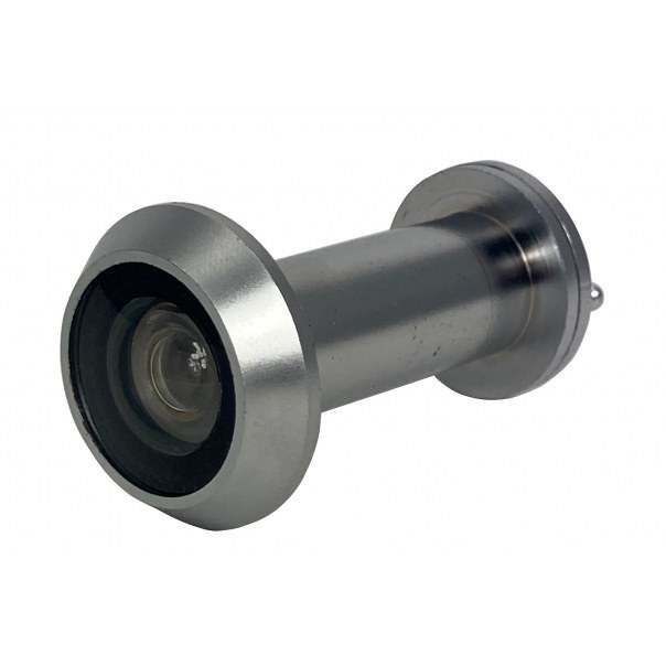 Wizjer drzwiowy przeciwpożarowy o średnicy 14 mm. Dedykowany do drzwi o grubości skrzydła 35-60 mm. Przebadany na 30 minut odporności ogniowej. Wykonany z mosiądzu i dostępny w wykończeniu chromowanym matowym. Wyposażony w soczewki wykonane z ognioodpornego szkła. Zapewnia kąt widzenia 200°. Opcjonalnie do wizjera można zamówić przedłużkę, która przedłuży go o dodatkowe 22 mm.