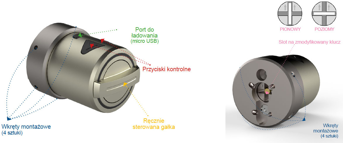Napęd motoryczny umożliwiający sterowanie pracą wkładek mechanicznych zamontowanych zarówno na nowych, jak i w już istniejących drzwiach. Pracą napędu można zarządzać za pomocą wielu urządzeń peryferyjnych w tym smartfonów.
