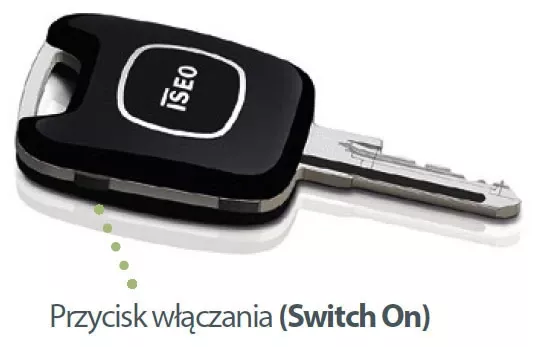 Przycisk włączania (switch ON) umieszczony z boku obudowy klucza F9000 ON umożliwia zwiększenie żywotności baterii do 5 lat, gdyż technologia Bluetooth Smart jest aktywowana na żądanie maksymalnie na 12 sekund. Wszystkie mechatroniczne klucze F9000 są zasilane przy użyciu standardowej litowej baterii CR2450.