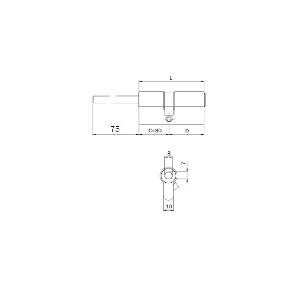 Dwustronna wkładka bębenkowa z przedłużką do gałki. Wykonana z mosiądzu i dostępna w wykończeniu niklowanym matowym. Dostarczana w komplecie wraz z trzema kluczami.