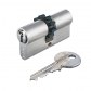 Dwustronna wkładka bębenkowa na klucz pionowy, zapewniająca podstawową odporność antywłamaniową. Wyposażona w zębatkę. Wykonana z mosiądzu i dostępna w wykończeniu niklowanym matowym. Dostarczana w zestawie wraz z trzema kluczami.