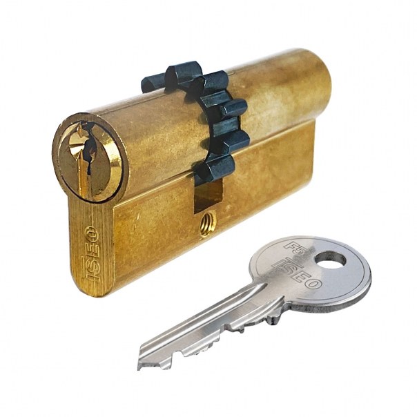 Dwustronna wkładka bębenkowa z zębatką zapewniająca podstawową odporność antywłamaniową. Wykonana z mosiądzu. Dostarczana w komplecie wraz z trzema kluczami.