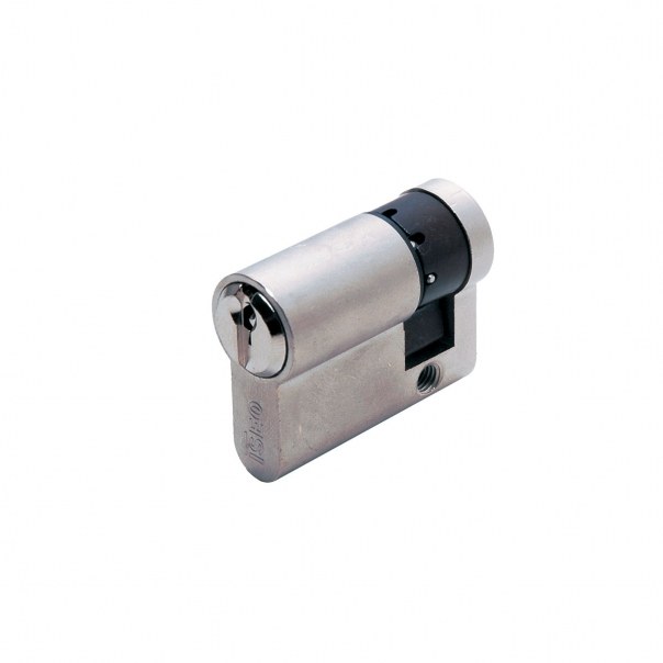 Jednostronna wkładka bębenkowa zapewniająca podstawową odporność antywłamaniową. Odpowiednia do zastosowania w systemach klucza, takich jak: system wkładek ujednoliconych, system zamka centralnego oraz system klucza grupowego Master Key. Wykonana z mosiądzu i dostępna w wykończeniu niklowanym matowym.