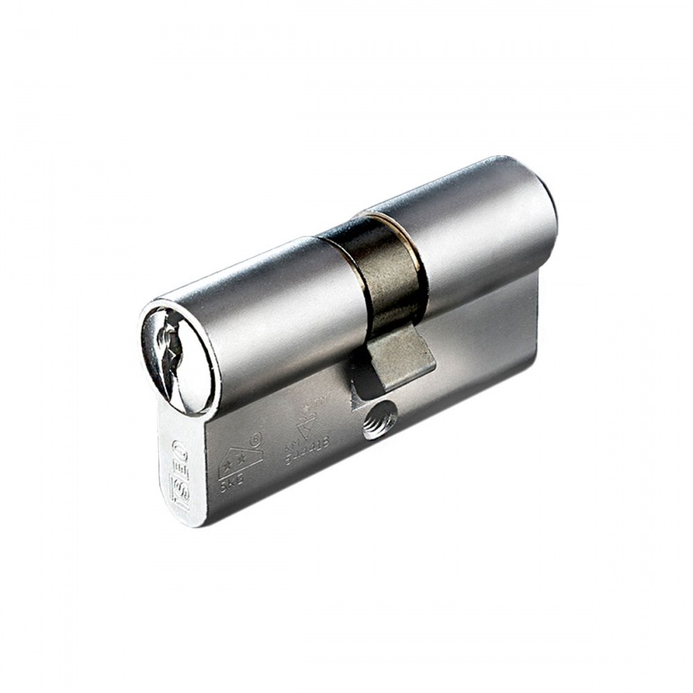Dwustronna wkładka bębenkowa zapewniająca bardzo wysoki poziom ochrony antywłamaniowej. Odpowiednia do zastosowania w systemach klucza, takich jak: system wkładek ujednoliconych, system zamka centralnego oraz system klucza grupowego Master Key. Wkładka jest wykonana z mosiądzu i posiada wykończenie niklowane matowe.