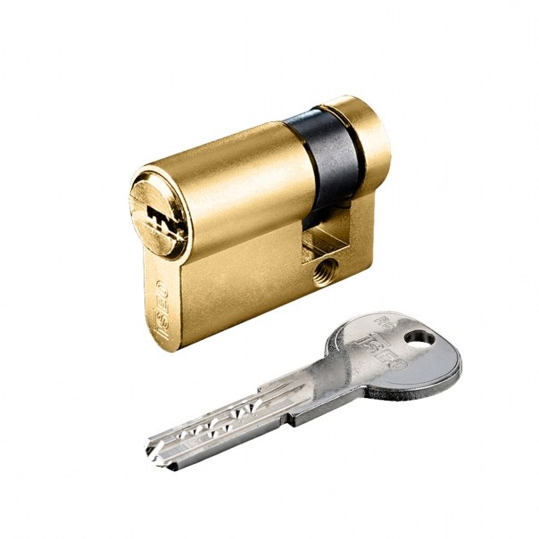Jednostronna wkładka bębenkowa zapewniająca wysoki poziom zabezpieczenia antywłamaniowego. Wykonana z mosiądzu i dostarczana w zestawie wraz z pięcioma kluczami.