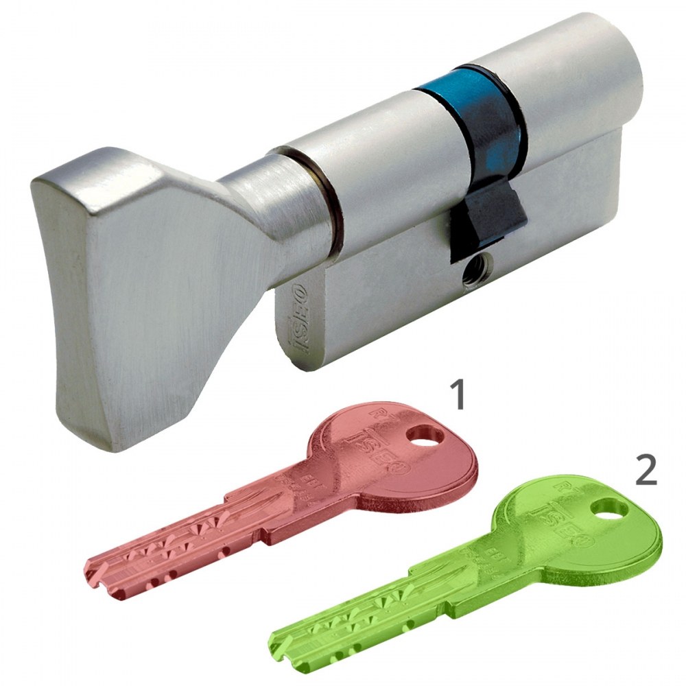 Dwustronna wkładka bębenkowa z rekombinacją i gałką oferująca bardzo wysoki poziom ochrony antywłamaniowej. Odpowiednia do zastosowania w systemach klucza takich jak: system wkładek ujednoliconych, system zamka centralnego oraz system klucza grupowego Master Key. Wykonana z mosiądzu i dostępna w wykończeniu niklowanym matowym.