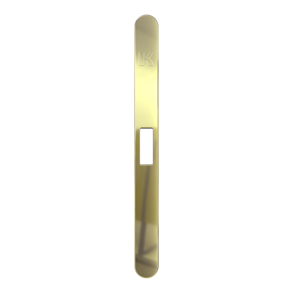 Nakładka na blachę czołową magnetycznego zamka serii Spinoff Premium. Dostępna w wykończeniu pozłacanym błyszczącym.
