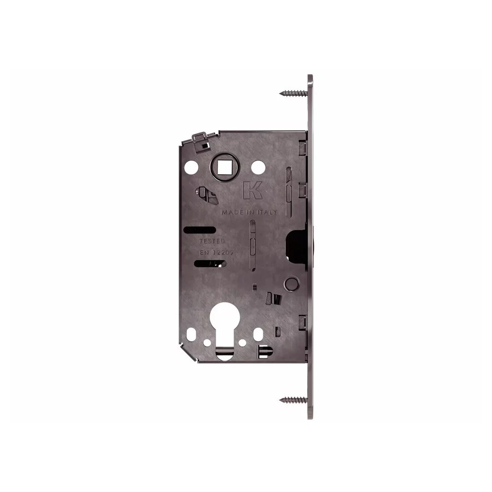 Zamek jest dostarczany wraz z blachą czołową, dwoma wkrętami montażowymi oraz wkrętem dedykowanym do zainstalowania wkładki. Symetryczny zaczep umożliwia zastosowanie zamka zarówno na lewych, jak i prawych skrzydłach drzwiowych.