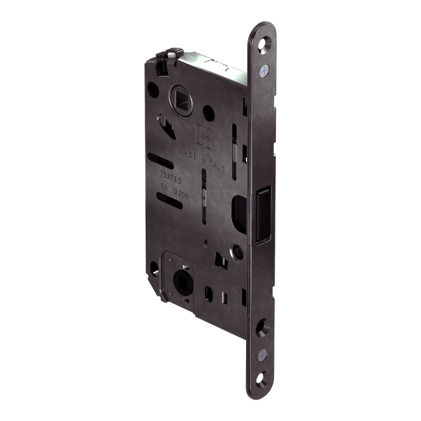 Symetryczny zaczep umożliwia zastosowanie zamka zarówno na lewych, jak i prawych skrzydłach drzwiowych. Zaczep pozostaje schowany przy otwartych drzwiach, nie wymaga smarowania ani wykonywania dodatkowych prac konserwacyjnych. Konstrukcja zamka sprawia, że zaczep nie uderza o ościeżnicę, dzięki czemu zamek zachowuje swój wygląd i funkcjonalność przez długi czas bez widocznych oznak eksploatacji.