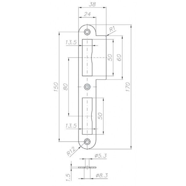 BLACHA ZACZEPOWA PŁASKA 170x24x1,5mm, LEWA, STAL NIERDZEWNA