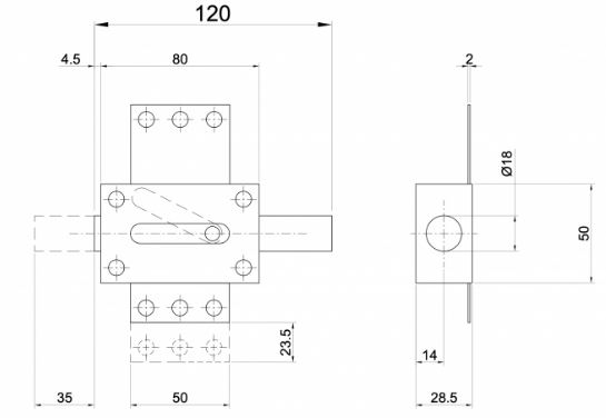 - Dodatkowy bolec do montażu w drzwiach o wzmocnionej konstrukcji.