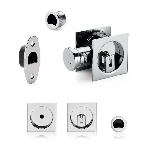 Kwadratowy zamek hakowy na klucz. Dedykowany do zastosowania w drewnianych drzwiach przesuwnych o grubości skrzydła od 38 do 48 mm. Dostępny w wykończeniu chromowanym. Głębokość (dormas) zamka wynosi 50 mm.