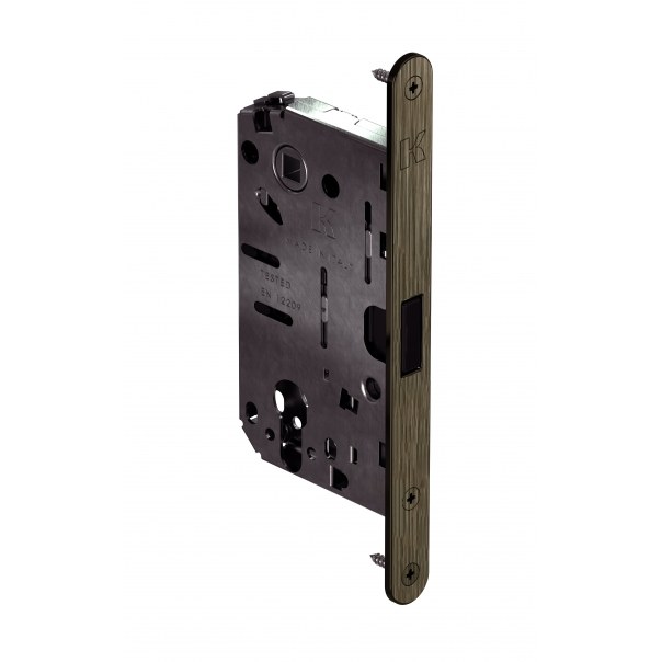 Blacha czołowa zamka jest wykonana ze znalu i posiada wykończenie brązowione przecierane. Jej wymiary wynoszą 196x18x3 mm. Wkręty montażowe blachy czołowej są widoczne oraz polakierowane w kolorze odpowiadającym jej wykończeniu.