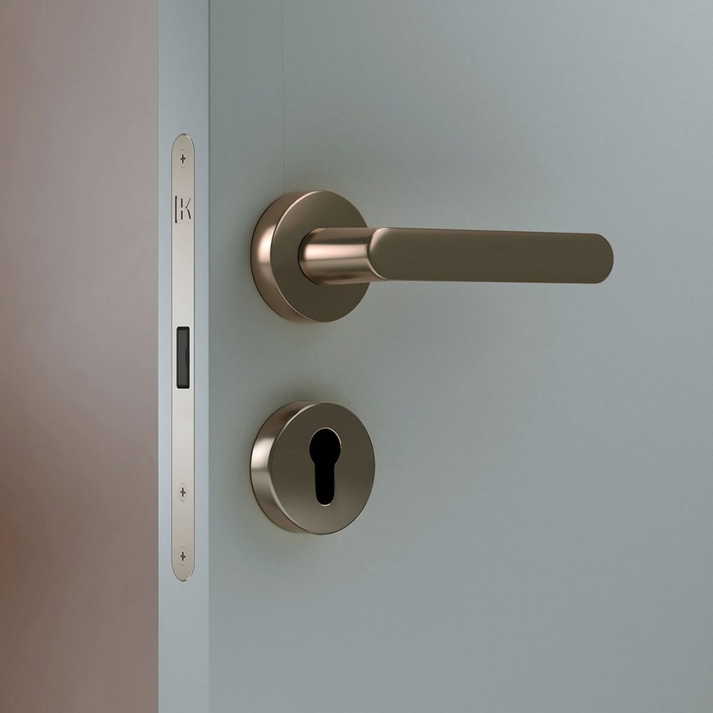 Zaczep pozostaje schowany przy otwartych drzwiach, nie wymaga smarowania ani dodatkowych prac konserwacyjnych. Konstrukcja zamka sprawia, że zaczep nie uderza o ościeżnicę, dzięki czemu zamek zachowuje swój wygląd i funkcjonalność przez długi czas bez widocznych oznak eksploatacji.