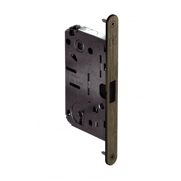 Zamek jest dostarczany wraz z blachą czołową i wkrętami montażowymi. Symetryczny zaczep umożliwia zastosowanie zamka zarówno na lewych, jak i prawych skrzydłach drzwiowych. Zaczep pozostaje schowany przy otwartych drzwiach, nie wymaga smarowania ani dodatkowych prac konserwacyjnych. Konstrukcja zamka sprawia, że zaczep nie uderza o ościeżnicę, dzięki czemu zamek zachowuje swój wygląd i funkcjonalność przez długi czas bez widocznych oznak eksploatacji.