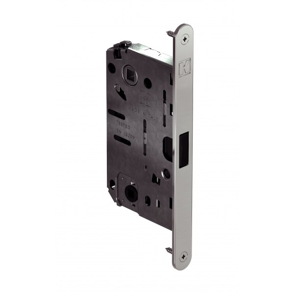 Zamek jest dostarczany wraz z blachą czołową i wkrętami montażowymi. Symetryczny zaczep umożliwia zastosowanie zamka zarówno na lewych, jak i prawych skrzydłach drzwiowych. Zaczep pozostaje schowany przy otwartych drzwiach, nie wymaga smarowania ani dodatkowych prac konserwacyjnych. Konstrukcja zamka sprawia, że zaczep nie uderza o ościeżnicę, dzięki czemu zamek zachowuje swój wygląd i funkcjonalność przez długi czas bez widocznych oznak eksploatacji.