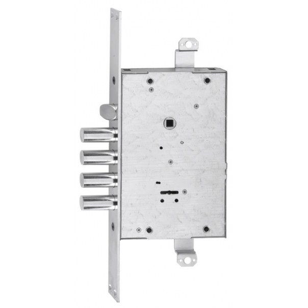 Jednosystemowy zamek rozporowy na klucz dwupiórowy dedykowany do zastosowania w drzwiach antywłamaniowych o wzmocnionej konstrukcji.