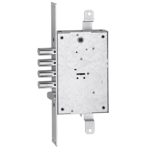 Jednosystemowy zamek rozporowy na klucz dwupiórowy dedykowany do zastosowania w drzwiach antywłamaniowych o wzmocnionej konstrukcji.