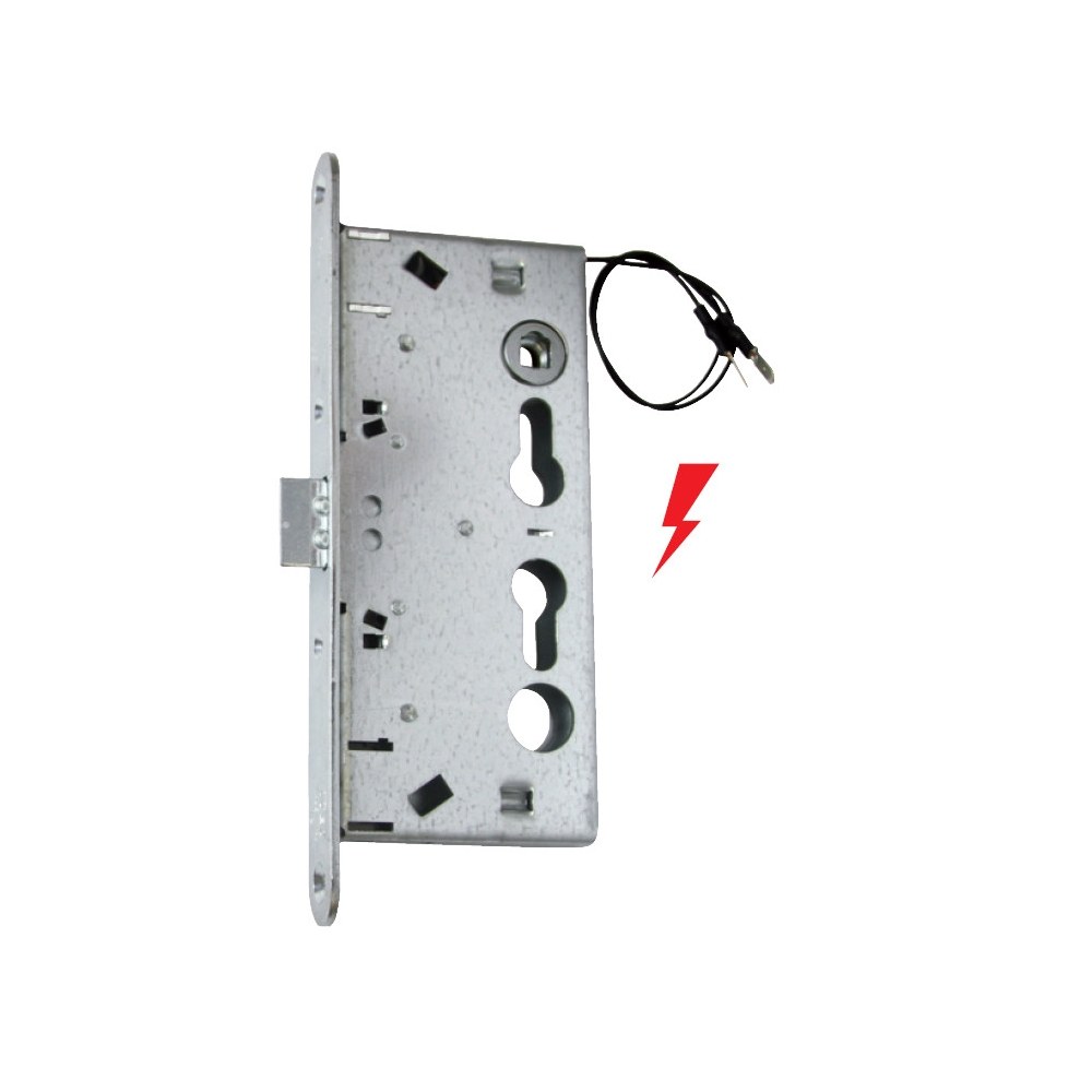 Jednopunktowy zamek przeciwpaniczny z funkcją elektrozaczepu dedykowany do zastosowania z zewnętrzną klamką w drzwiach przeciwpożarowych, znajdujących się na drogach ewakuacyjnych. Posiada blachę czołową płaską ze stali galwanizowanej na biało. Rozstaw zamka wynosi 72 mm, a głębokość (dormas) 65 mm. Dodatkowo zamek posiada otwór na trzpień ⧄ 9 mm.