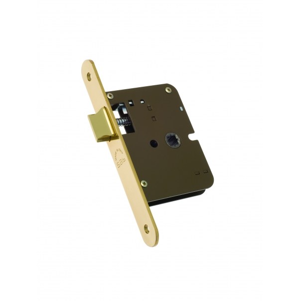 Zamek wpuszczany z ozdobną blachą czołową wykonaną z mosiądzu i dostępną w wykończeniu lakierowanym.