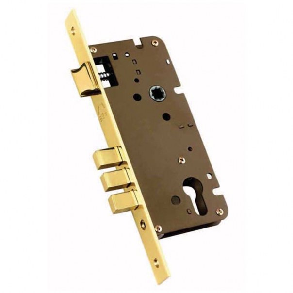 Zamek wpuszczany charakteryzujący się wysoką jakością wykonania i wytrzymałością. Wyróżnia się elegancką dekoracyjną blachą czołową, która znakomicie podkreśla piękno każdych drzwi wykonanych z litego drewna.