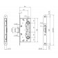 Rozstaw zamka wynosi 72 mm, a głębokość (dormass) 65 mm. Dodatkowo kaseta posiada otwór na trzpień klamki ⧄ 9 mm oraz otwór na wkładkę bębenkową. Wymiary kasety zamka to 185x84x17 mm.