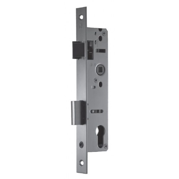 Zamek wpuszczany dedykowany do zastosowania w drzwiach profilowych i aluminiowych.