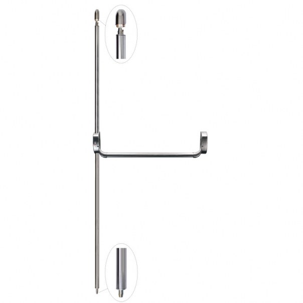 Nawierzchniowe zamknięcie przeciwpaniczne dwupunktowe (ryglowanie góra / dół), uruchamiane drążkiem naciskowym.