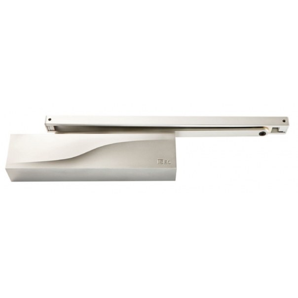 Zamykacz drzwiowy wyposażony w szynę z ramieniem ślizgowym. Montowany nawierzchniowo na skrzydle drzwiowym. Odpowiedni do zastosowania w drzwiach przeciwpożarowych. Sklasyfikowany według europejskiej normy EN 1154. Posiada oznaczenie CE. Prezentowany zamykacz dostępny jest w wykończeniu w kolorze srebrnym.