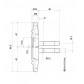 Górna i dolna część zawiasu OT 190 o średnicy 14 mm wyposażona w trzpienie o długości 40 mm. Do zastosowania w drewnianych drzwiach przylgowych o maksymalnej wadze 60 kg. Wykończenie O0 - mosiądzowane.